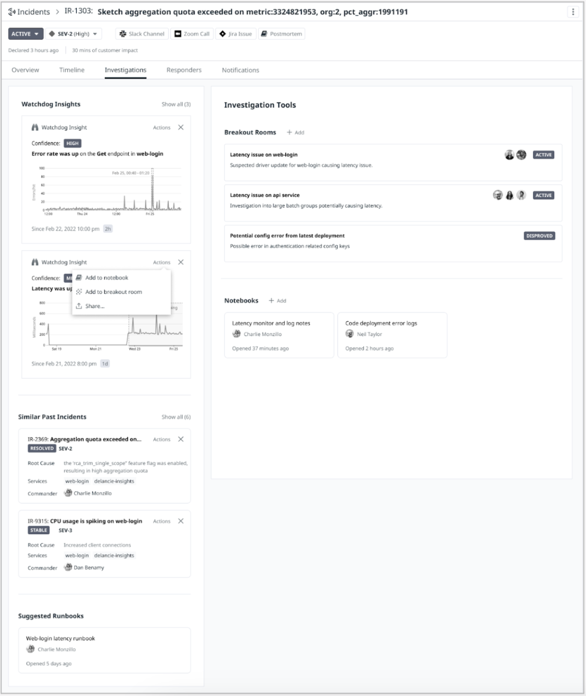 For responders giving joining responders context - or as a new responder joining an existing incident, one of the biggest pains was sharing or absorbing the context. By surfacing the right metrics or allow easy and quick ways for users to pin a graph or send key graphs to each other, we might help them save time getting up to speed.