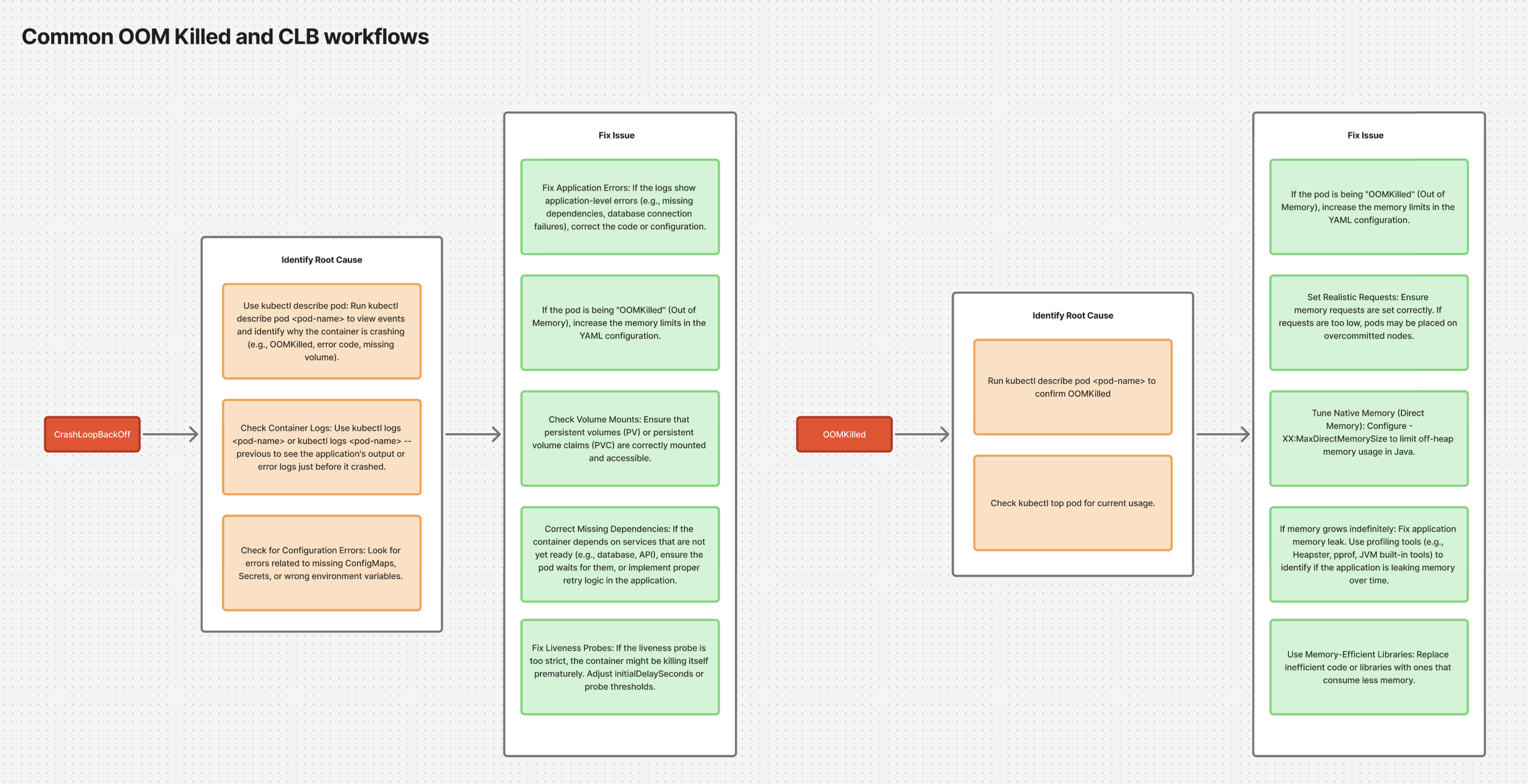 Mapping out real workflows used to find root cause and resolve common Kubernetes issues