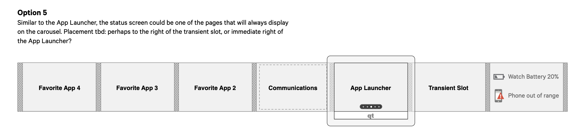 The applications (or applets, as we called them) we decided to make for Toq were centered around the same principles - helpful for the immediate moment, easy to open and trigger, simple and minimalistic. Working with the lead and product manager, we also devised a mental model for helping the user interact with the various apps: a carousel. A user can set favorite applets within a carousel in an order they wish for easy access. Everything else would be organized in a folder.
