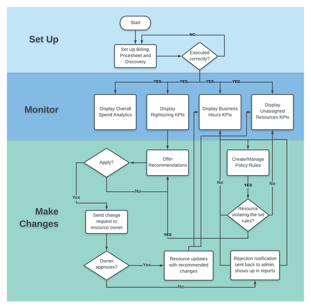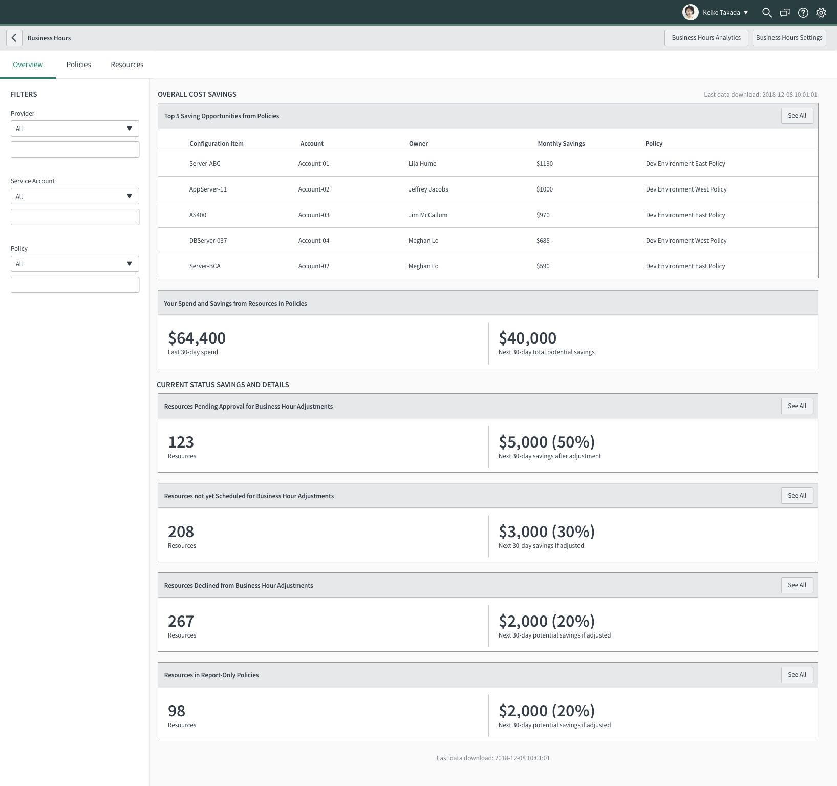 The design philosophy of this application was centered around continuous improvement. Within seconds of logging in, a cloud admin should know what's working and what's not, and drill right into optimizing resources further.